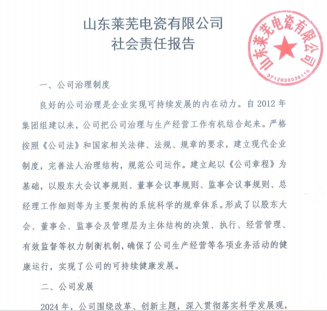 山東萊蕪電瓷有限公司2024年度溫室氣體排放核查報告 山東萊蕪電瓷有限公司2024年度溫室氣體排放核查報告